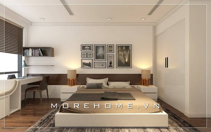 Thiết kế nội thất phòng ngủ chung cư hiện đại với nội thất đơn giản, màu sắc trang nhã mang đến không gian nghỉ ngơi dễ chịu cho gia chủ