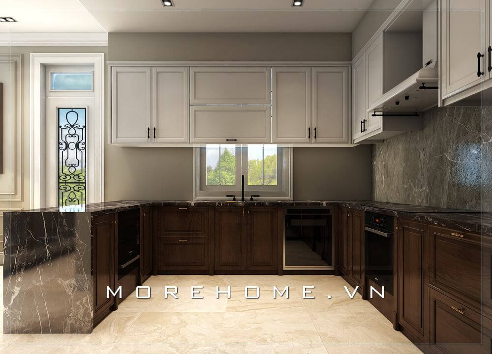 Thiết kế nội thất phòng bếp biệt thự tân cổ điển sang trọng, tiện nghi và đẳng cấp